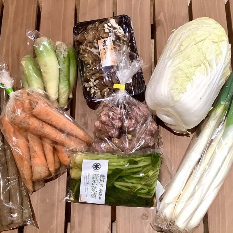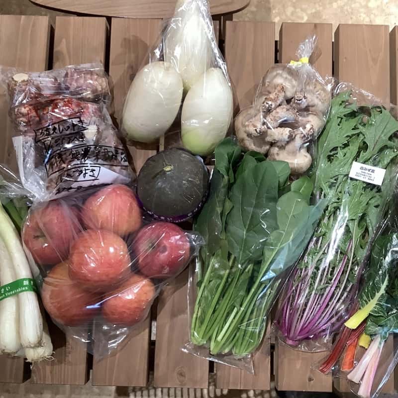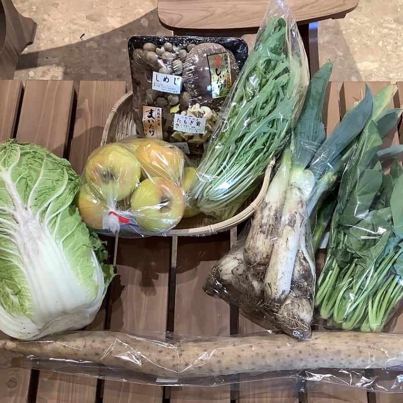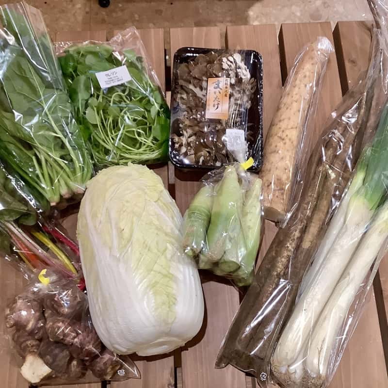 白菜、長芋、ほうれん草、下仁田ネギ、水菜、旬のキノコセット、リンゴ