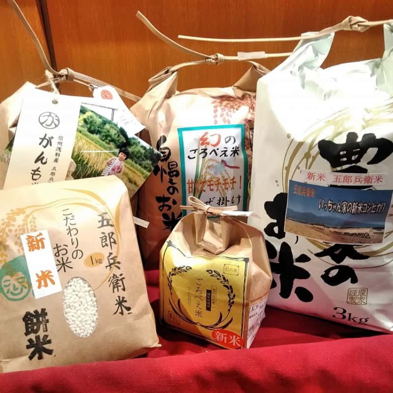 佐久市浅科の「五郎兵衛米用水」を使って栽培されたお米のこと。元々お米が出来ない土地でしたが、江戸時代に市川五郎兵衛米翁が強い粘度質の土を見て「ここでお米を作ったら美味しいお米になるに違いない」と用水路を引くことを決意。