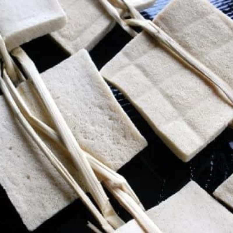 天然の寒さで凍らせる手づくり凍み豆腐は気温がー5℃以下にならないと作れません。今は藁で編まず一晩凍らした一夜凍みと呼ばれる冷凍庫で販売する凍み豆腐が主流です。