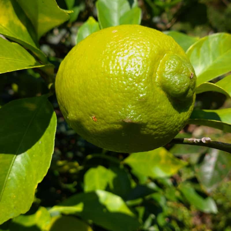まだ青いです。無農薬ですので安心して食べていただけます。
