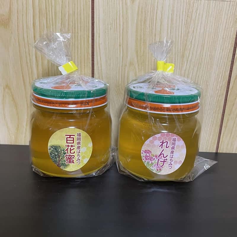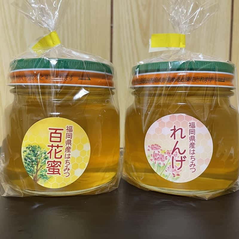 福岡県産非加熱はちみつ 百花蜜・れんげ蜜各300gのセットです。