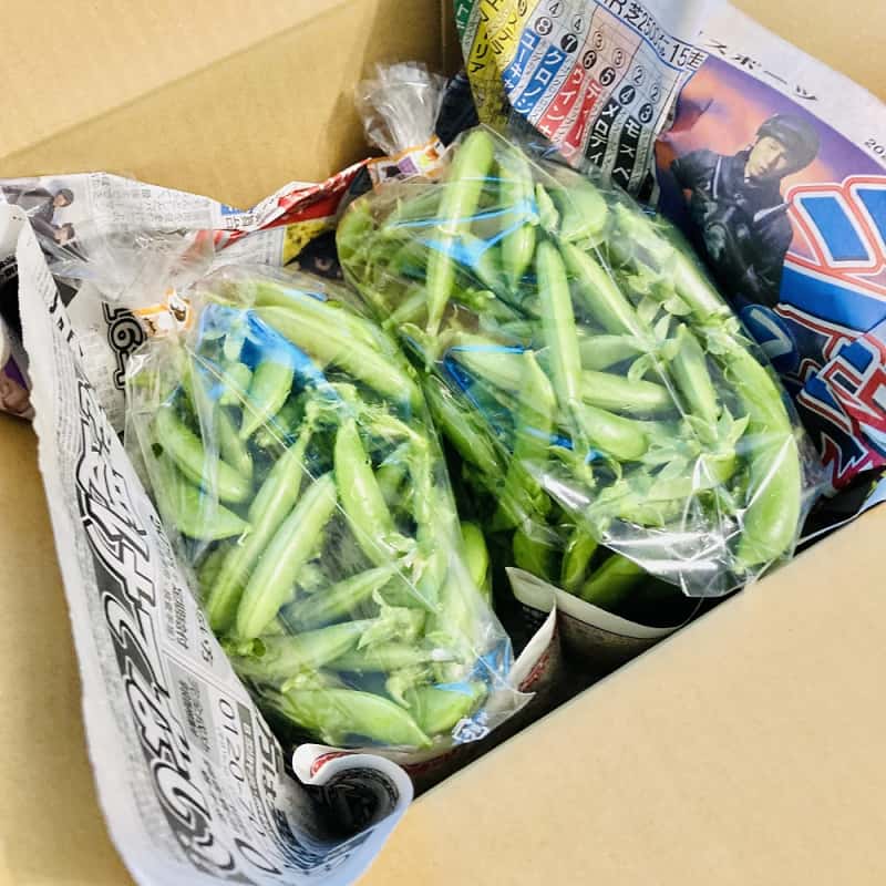 キレイなスナップエンドウが届きました‼️みずみずしいのがすごくわかります😃