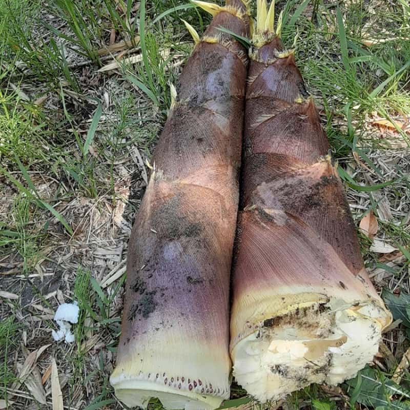 昨年度(2020年)のタケノコ。50センチを超えるタケノコも、地表に出たものを折っているのではなく、ちゃんと地面の中から掘り出されるものです。