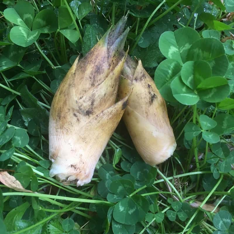 昨年度(2020年)のタケノコ。50センチを超えるタケノコも、地表に出たものを折っているのではなく、ちゃんと地面の中から掘り出されるものです。