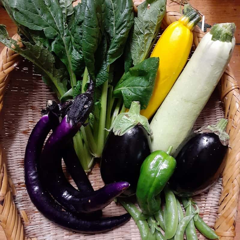 どの子もBBQで丸ごと焼いて食べると美味しい。米ナスの丸焼きは迫力あり、焼き上がって実のとろとろ感を楽しんでみてください。