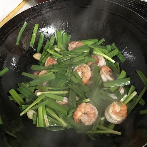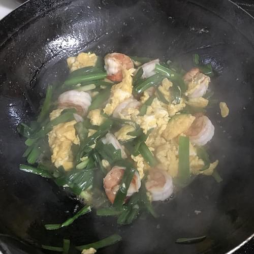 #旬野菜~ニラと海老と卵の塩炒め