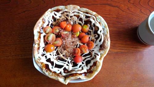 美味しいお好み焼です。 野菜や豚肉などお好みの具材で楽しみましょう。