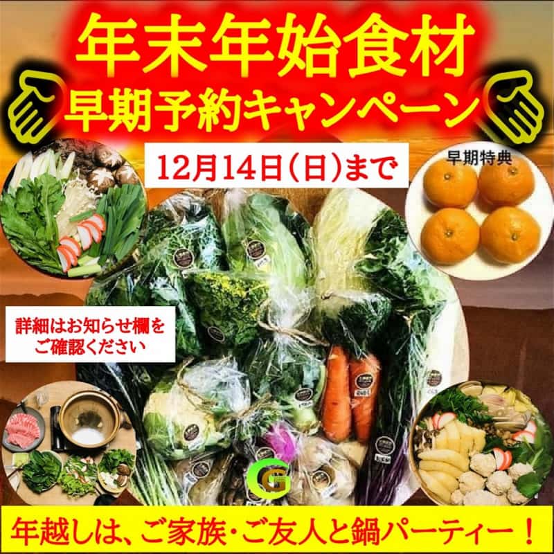 大根 、ブロッコリー、キャベツ、 サラダセット、白菜、なす、きゅうり、 オクラ、いんげん、そらまめ、 スナップえんどう、春菊、ミニトマト、 みかん、レモン、にんじん、ねぎ、レタス 小松菜、ほうれん草、春菊