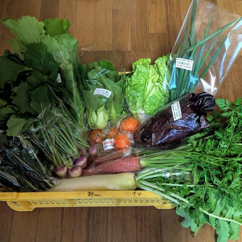 核家族(3〜4人)向けに少量多品目(15種類以上)の野菜や果物を、100サイズの箱(6〜10kg)に詰めてお届けいたします。 【主に栽培している野菜など】 『野菜』ジャガイモ、タマネギ、ニンジン、サトイモ、ゴボウ、ダイコン、大豆、白菜、キャベツ、ブロッコリー、コマツ菜、ホウレン草、ネギ、トマト、シュンギクなど 『果物』栗、枇杷、キウイ、柿、銀杏、椎茸など