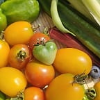 ほうれん草 小松菜 ウマイナ 大根 人参 ネギ ワケギ キャベツ 白菜 玉ねぎ ジャガイモ 里芋 うすいえんどう オクラ 長茄子 水茄子 キュウリ 万願寺とうがらし とうもろこし ゴーヤ 清姫ししとう ミニトマト ピーマン バナナウリ 渋柿 柿 ビワ