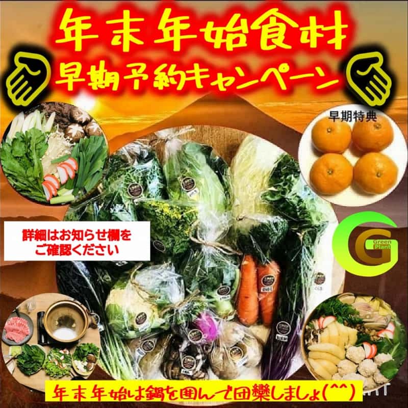 大根 、ブロッコリー、キャベツ、 サラダセット、白菜、なす、きゅうり、 オクラ、いんげん、そらまめ、 スナップえんどう、春菊、ミニトマト、 みかん、レモン、にんじん、ねぎ、レタス 小松菜、ほうれん草、春菊