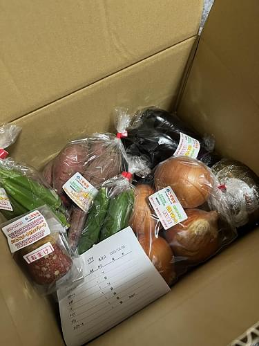 予定で、知らせていただいていた枝豆が、ジャンボニンニクに代わったのは残念でしたが、活用させて頂きます。茄子はとろりつと仕上がりおいしかったです。ミニさつまいももしっとり甘みたっぷりでした。おまけのカップケーキもおいしかったです。