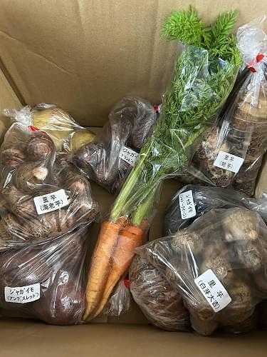 | コメント | 時期野菜の『イタリアンパセリ、菊芋、原木椎茸、サラダレタスミックス、チャービル』の他、米(農家仲間提供品)、サツマイモ、里芋、ジャガイモ、高菜漬、鷹の爪、野沢菜漬、干し大根、レモン、等々を荷物重さ7~9kgまで詰めてお届けさせていただきます。 | ||||