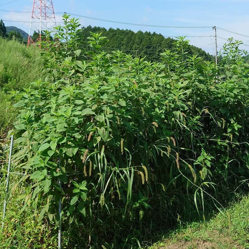 菊芋の繁殖力は非常に強く、昨年掘り残した小さな芋から勝手に発芽し画像の通り立派に成長しております。