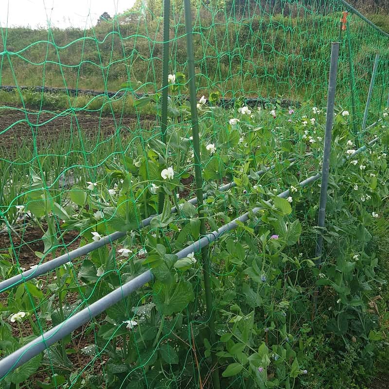 昨秋種を蒔いたエンドウ類(うすいエンドウ、絹さや、スナップエンドウ)の育ちは今ひつつでしたが画像の通り収穫開始は間近のようです。