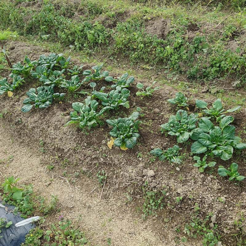 かぶ、大根同様に種蒔きを遅らせましたが順調に育っておりミニ白菜は収穫サイズ間近となり、年を超えても収穫できる冬峠は結球を始めております。