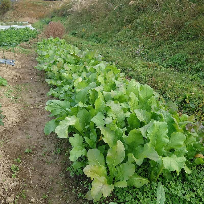 代わってカブ、大根、白菜等の冬野菜が収穫できるようになりました。漬物が美味しい高菜、野沢菜も順調に育っております。