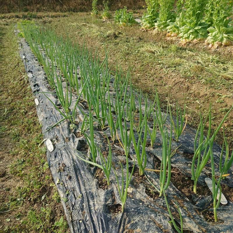 4種類(愛知白、キークス、サニーレッド、泉州黄)栽培の玉ネギは成長が遅れており大きな球にならないのではと心配ですが、ニンニク(赤、ジャンボ、ホワイト6片、マイルドエックス、嘉定)は順調に育っており昨年以上の収量を期待しております。
