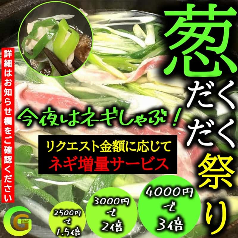 ヤサイが届いた日の、夕食はGreenPlant自慢のネギたっぷり使った『ネギしゃぶ』お楽しみください♪