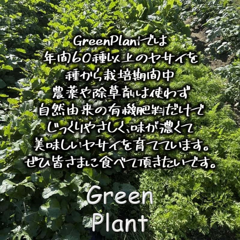 Green Plantのヤサイたちは、種から有機肥料だけでじっくり・やさしく育てていますので、