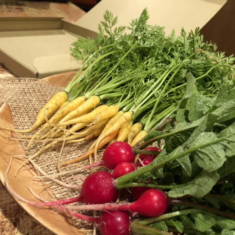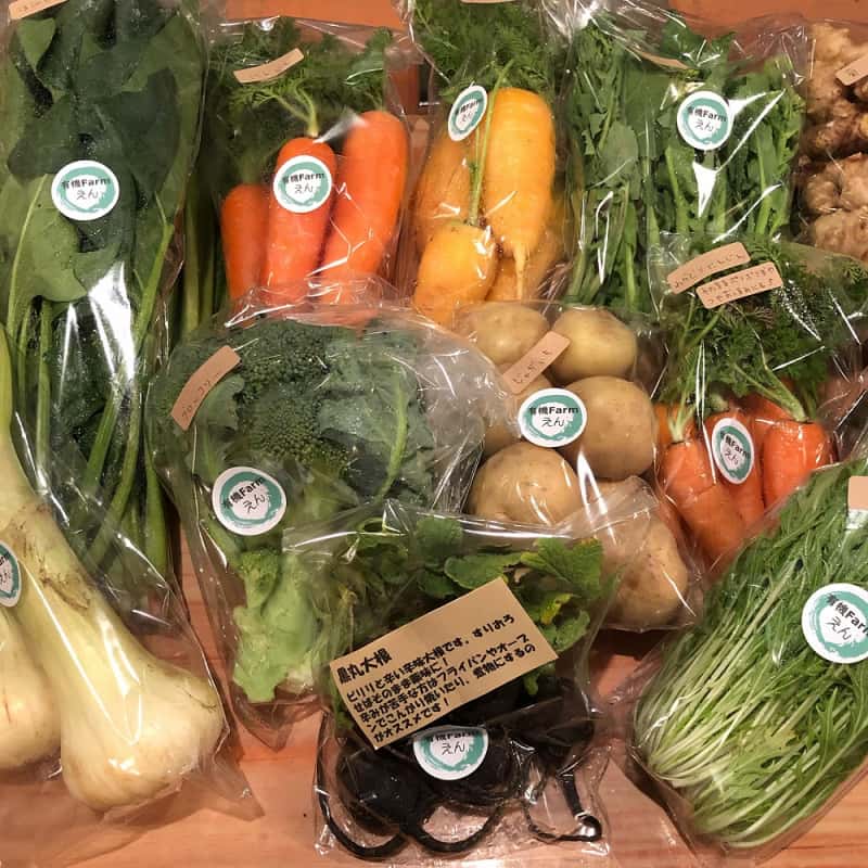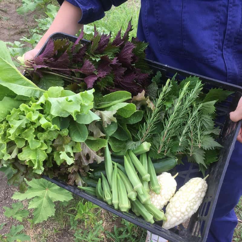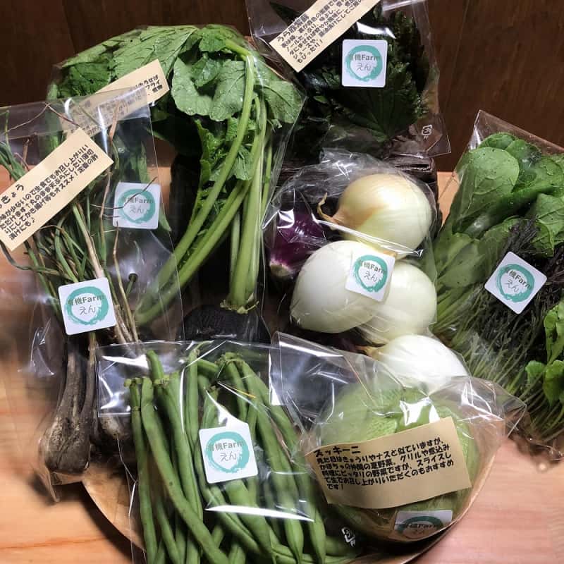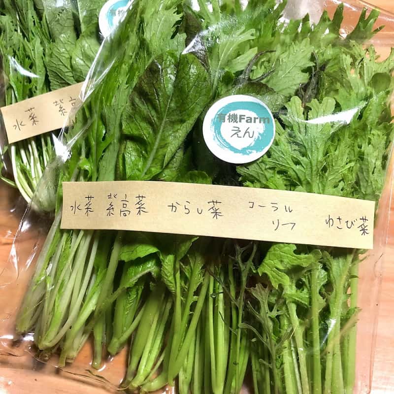 有機ファームえんはあまり市場に出回らないようなめずらしい品種を積極的に採用し、収穫のタイミングも一般的なものから若芽や早穫りなど様々なタイミングのものを収穫しご提供しています。