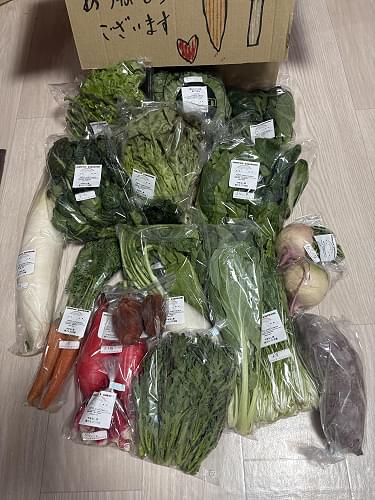 届きました。たくさんの野菜をありがとうございます。本年もお世話になりました。また来年もよろしくお願いします。